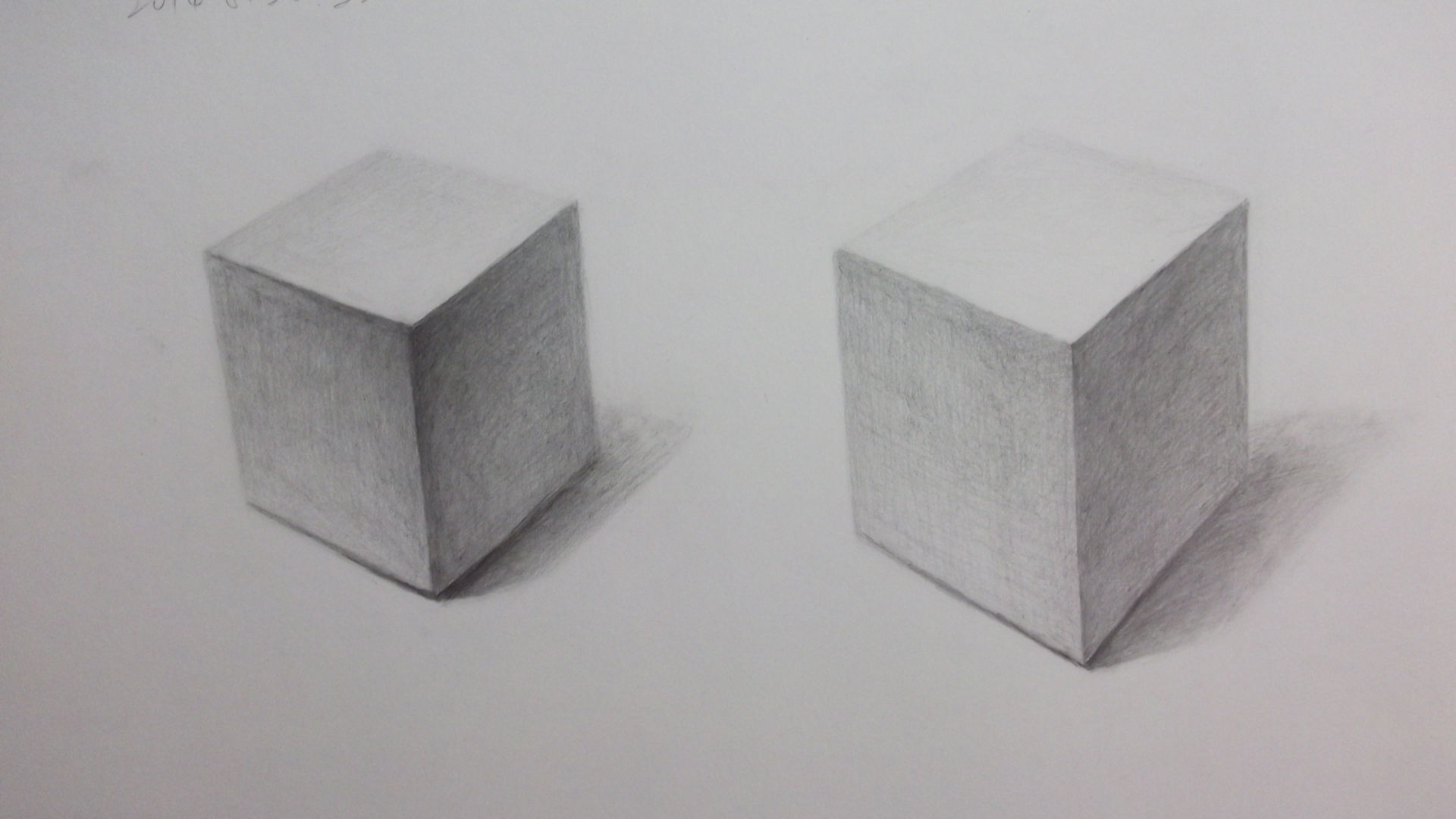 40여일동안 4절지 360여개의 선긋기연습만 하다가 이쯤해서 되었으려니 하고 정육면체부터 그리기 시작하려고 하는데, 아직도 선긋기가 부족함이 느껴짐. 난감~잘못된 부분과 잘못된 습관이 무엇인지.....