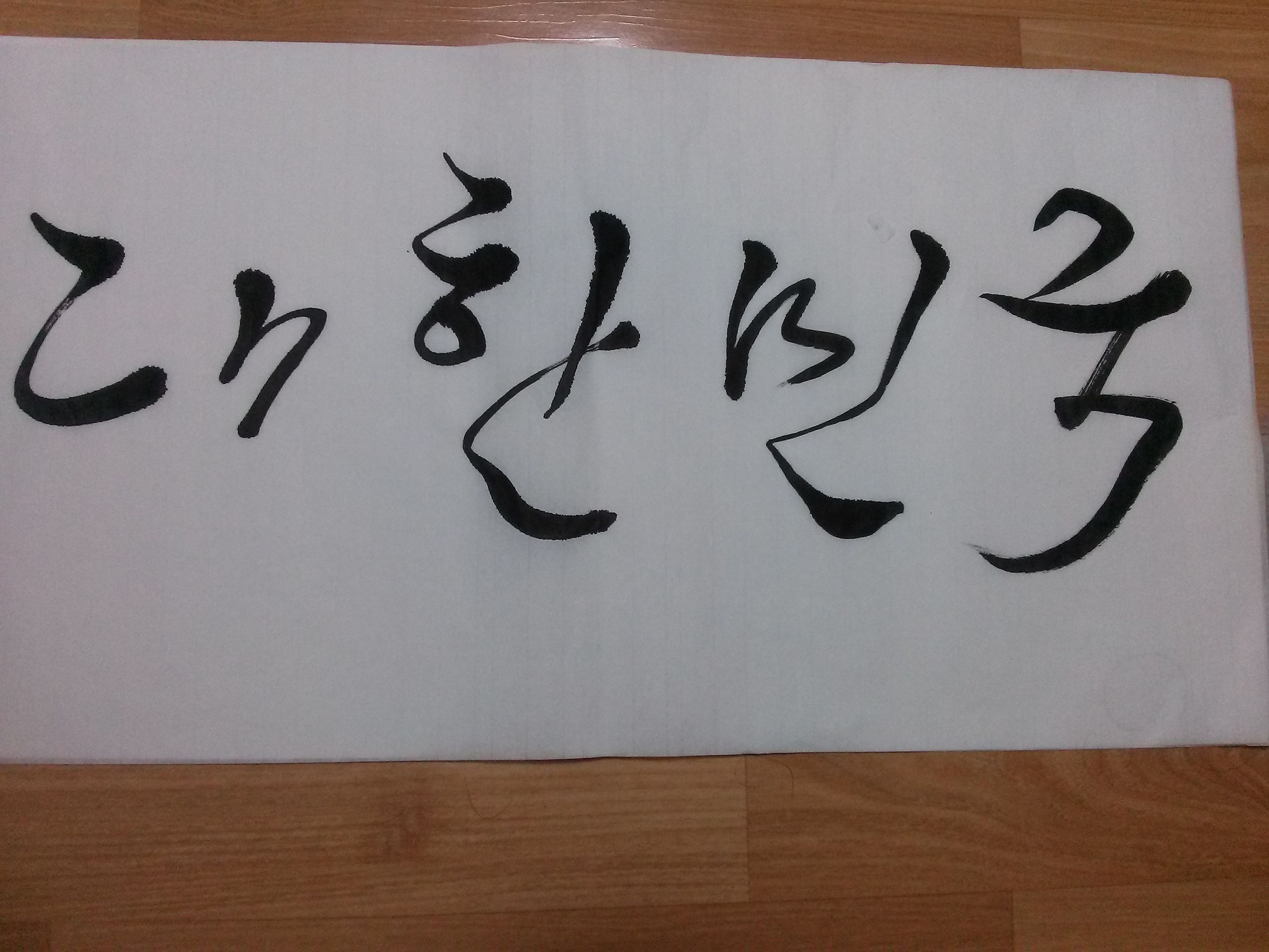 제나름 요렇게저렇게연습해보고써본건데요 균형이안맞는건지 또 대한민국이라는 중엄함과 묵직함 힘찬기상뭐이런걸넣어보고싶었는데요 아직 마음과 몸이따로놀아요 와 근데 신기하게도요 무슨마술같이 막막하던머리속이 선생님이예로써주시고 팁을알려주시니까 좀 가닥이잡히는듯해요 십년묵은체증이 활명수한병이제마시기시작한듯한 ㅋㅋ 이거하나써보고 거창하지요 감사합니다 선생님 안되는건 먹물조절때문인지 저는얇게표현하고싶은획도 힘을빼도 그리얇게표현이안되요