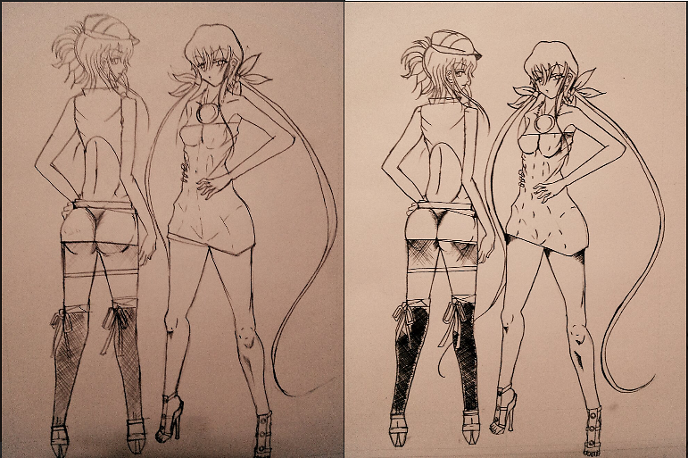 P.S) 폰으로 찍은거라 화질이 이상하지만..... 만화원고지에다가 그린것들입니다... 왼쪽이 '연필화'