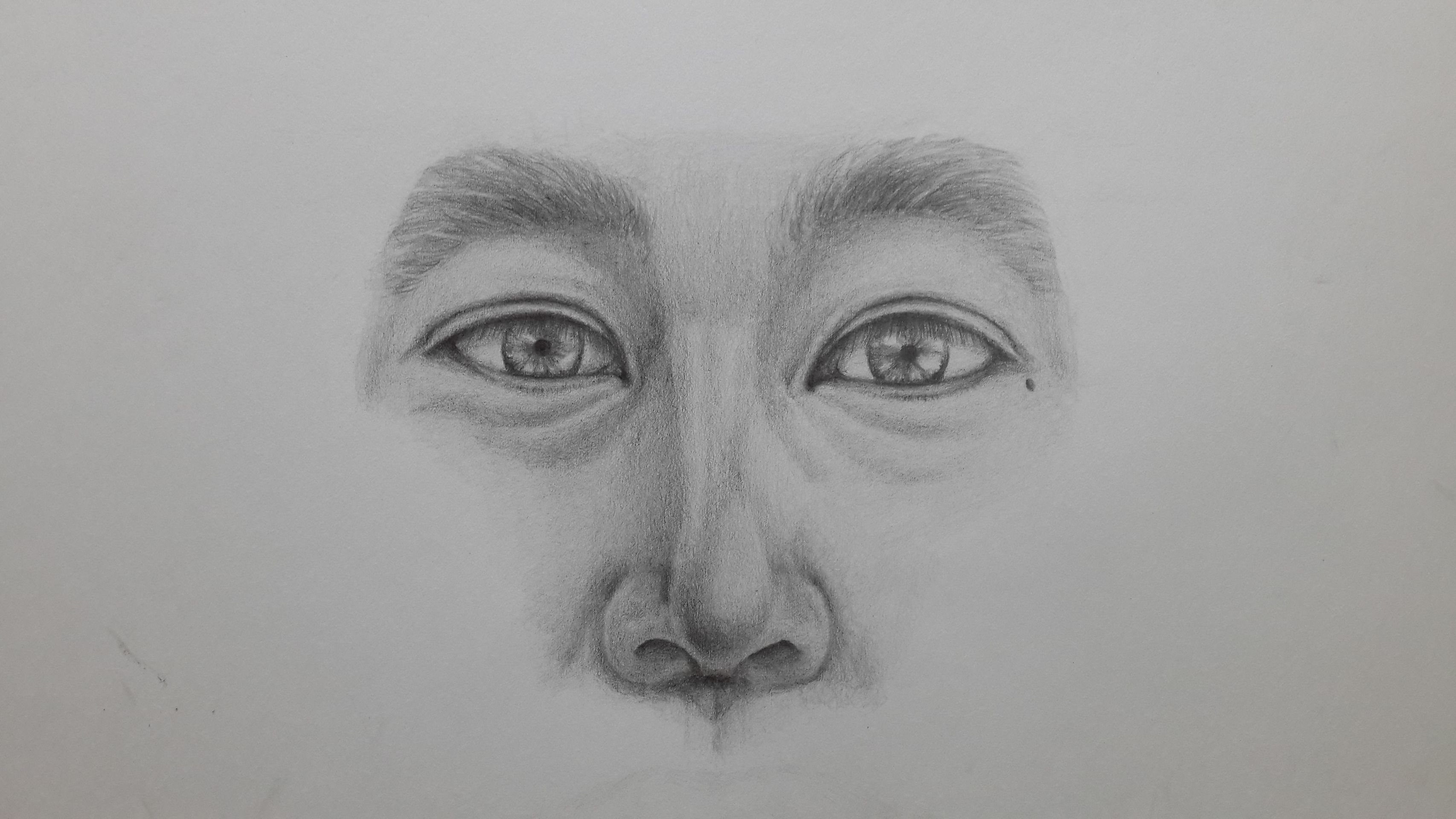 코 강의를 듣고 눈과 코를 연결하여 연습하라고 하셔서 해봤는데요~~^^;;살짝 턱을 들고 아래방향에서 찍은 사진이라 코구멍이 보이거든요...아래각도 코를 처음 그려보는 거라서.... 눈과 코 보시고 보완점 알려주세요~ ^^ 감사합니다~ ^^