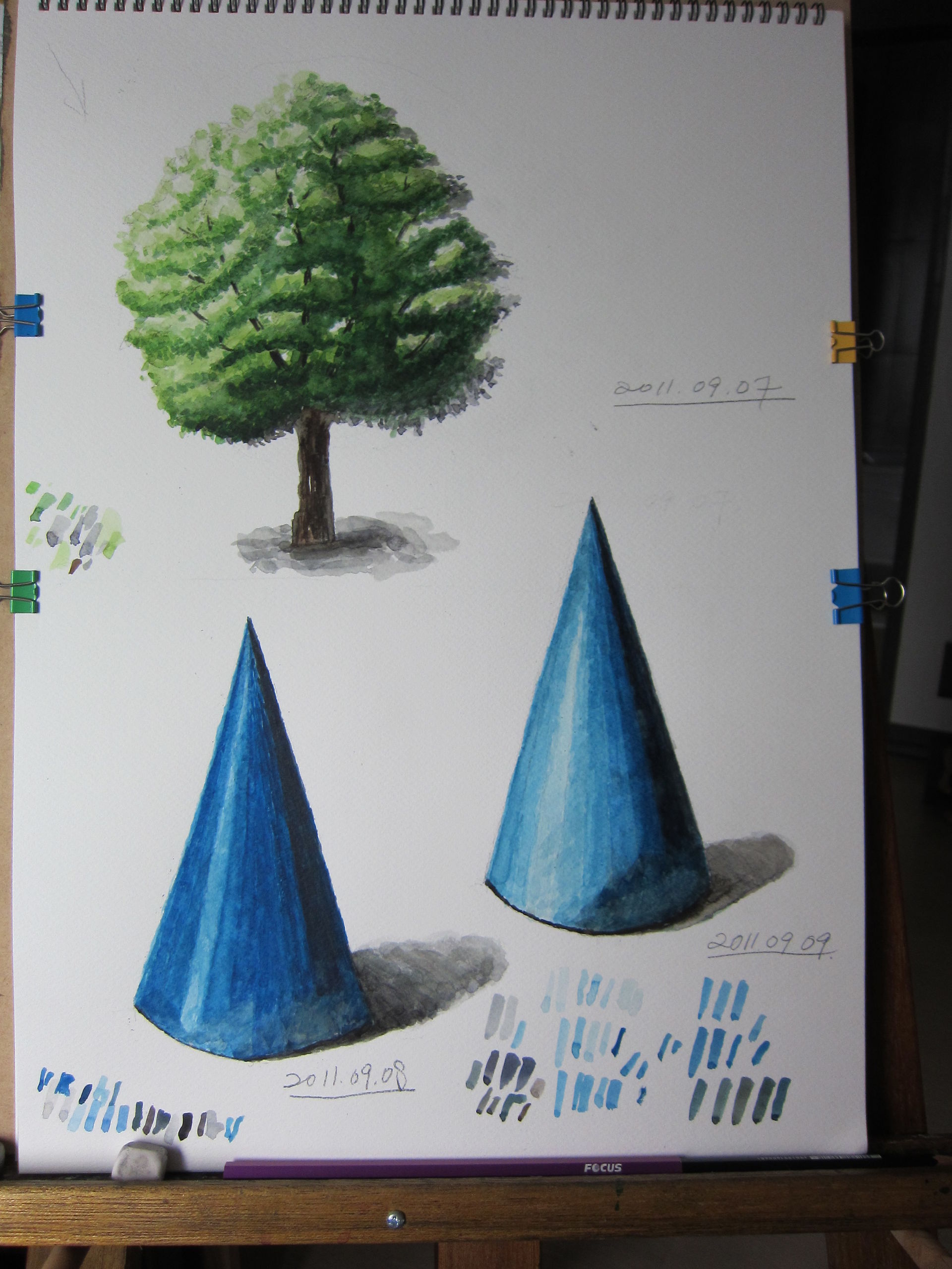 선생님 보아주세요.. 잎이 풍성한나무 다시...푸른색 원뿔임니다.. 감사함니다..