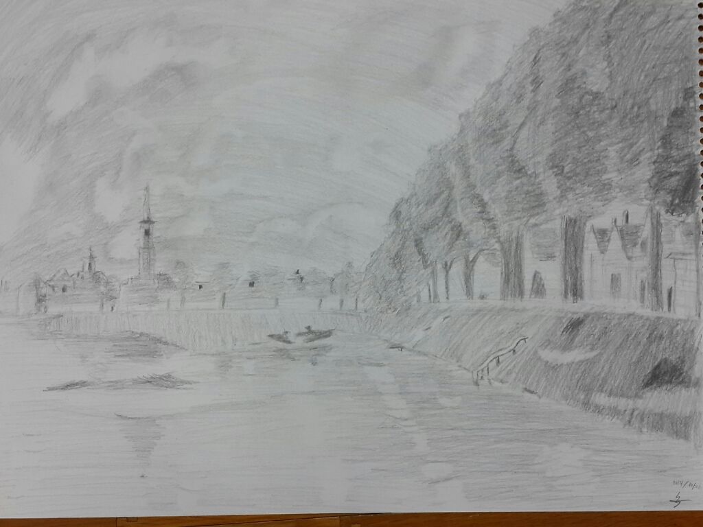 나무는 하다보니힘들어서 그냥 존재만표현햇구요... 구름과 강을 잘표현하고싶은데...충고좀해주세요