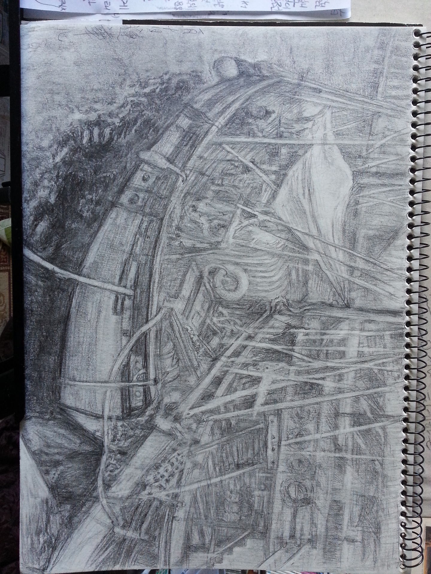 보트가 있는 풍경 그림에서 수면에 원근감이 나오도록 다시  그려서 올립니다 .