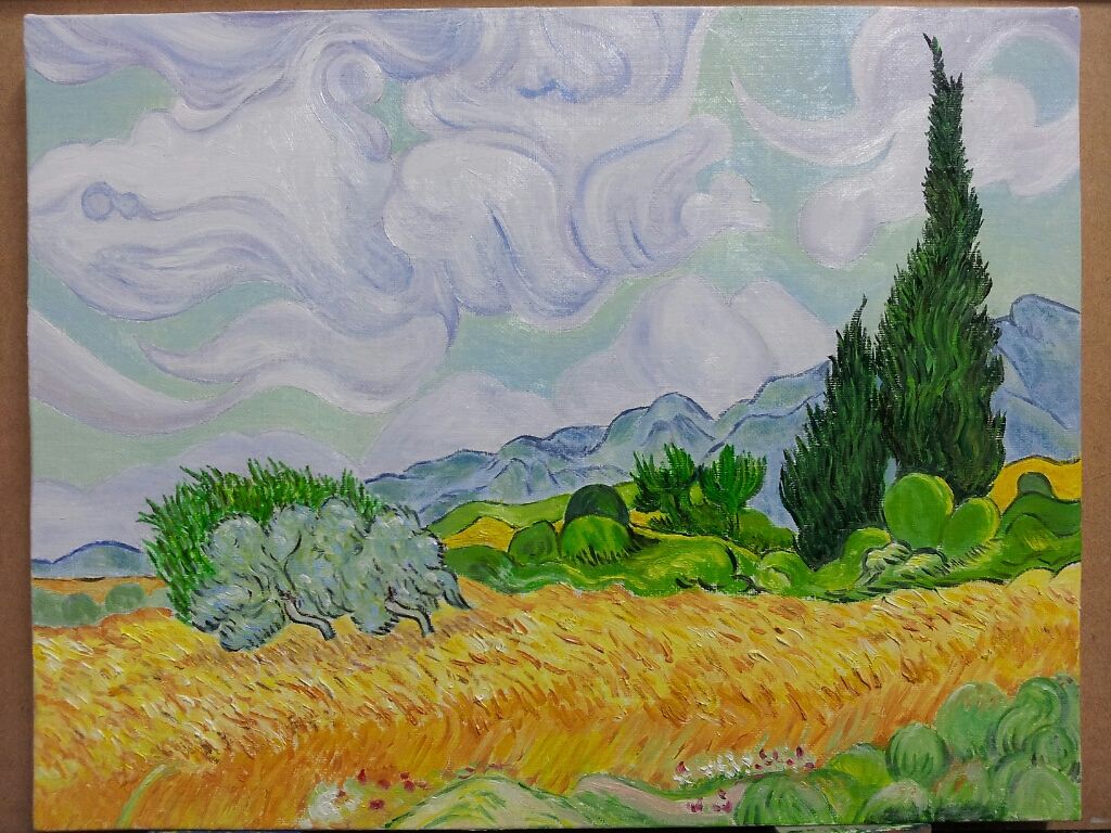 밀밭, 삼나무, 올리브나무, 구름 등 선생님이 말씀하신대로 모사해보려고 하였지만 제대로 되었는지 궁금합니다.
