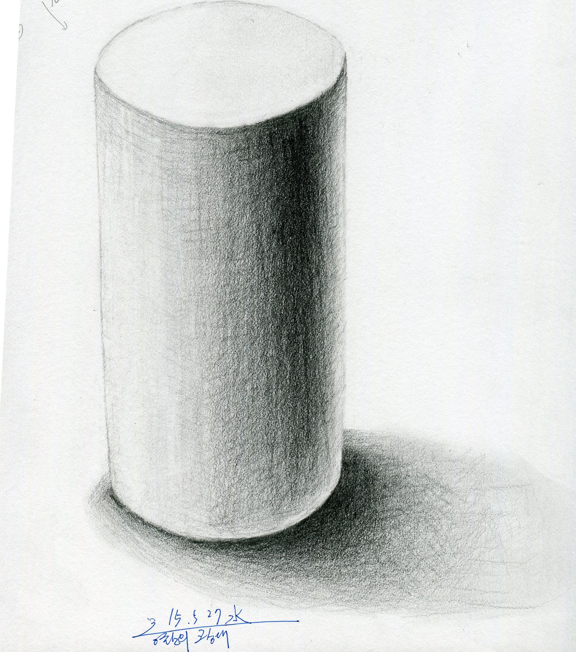 윗면을 그릴 때, 그 크기를 설정할 때 조금 힘들긴 하지만, 연습하면 괜찮아지겠지요. 네모 칸을 연하게 그려두고 하지만서도 멀리서 보면 원은 원이 아니라 여지없이 끝부분이 짜부라진 타원이 되고 말지만, 계속 고민하고 그리니 눈에 조금은 익는 것 같습니다.