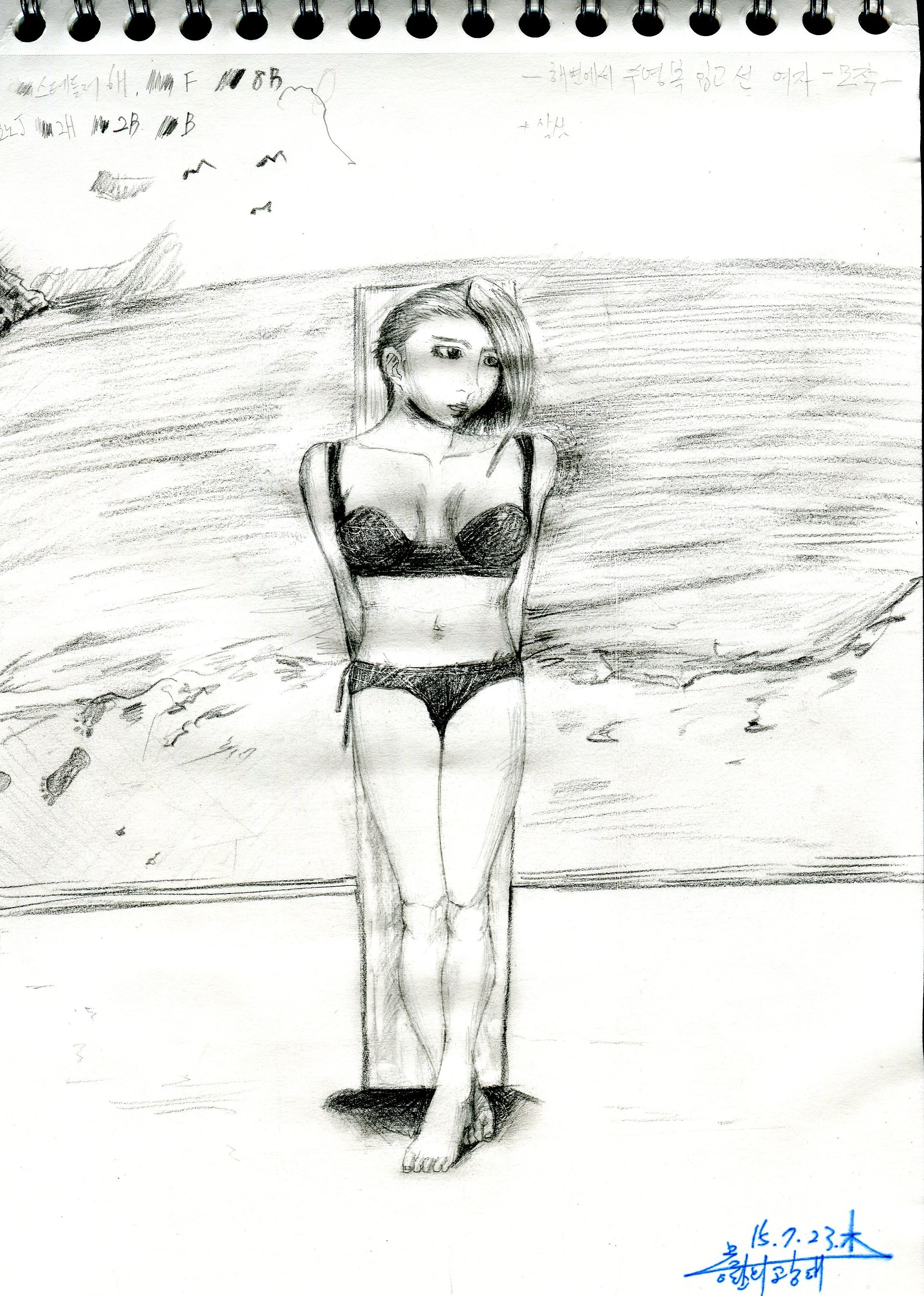 비키니 입은 여자를 그려보았습니다.