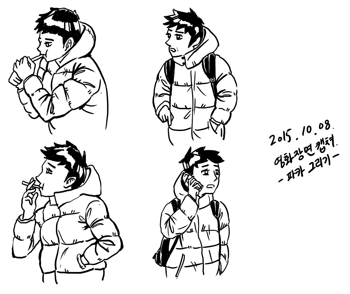 영화에서 파카입은 장면중 괜찮은 장면을 몇개 추려내서 그려보았는데요.