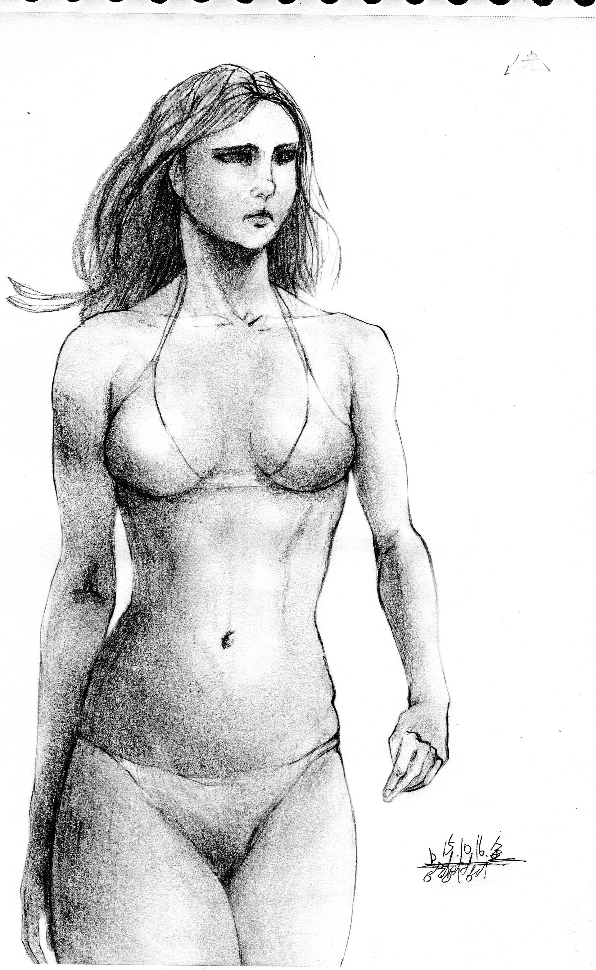 오늘은 8주차 20강에 나오는 '라인'이 살아 있는 여자 몸을 그려보았습니다. 제가 전에 올린 비키니 입은 여자 습작과는 비교도 되지 않을 정도로 엄청나게 가느다랗고 균형잡힌 여자 모델인지라 잠시 옛날로 돌아가서 제 그림을 뜯어볼 수 있는 기회도 되었습니다. 이런 게 공부죠...