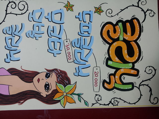 겹쳐서 글씨를 쓰다보니 자음보다 모음 색깔이 더 진한 걸 써야 할 거 같더라구요. 그리고 사람 그리는 것보다 색칠하는 것이 더 어려웠던 거 같애요. 저는 머메이드 용지 8절지를 사용했어요. 그래서 공간이 좀 없어 보이죠? 조언 부탁 드려요!