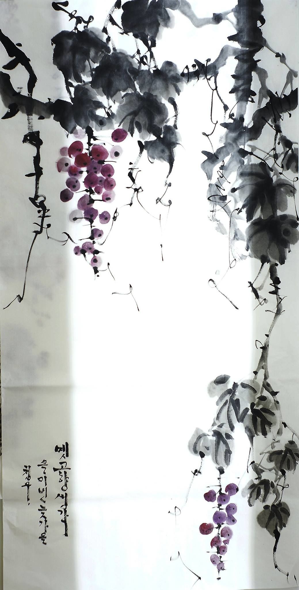 교수님포도를 그려봤습니다.내년에 한국에 귀국을 하게됩니다. 하여 문인화 대회에 참가를 해보고 싶어 전지에 연습하고 있습니다.고칠점을 지적해 주시면 준비에 많은 도움이 되겠습니다. 감사합니다.