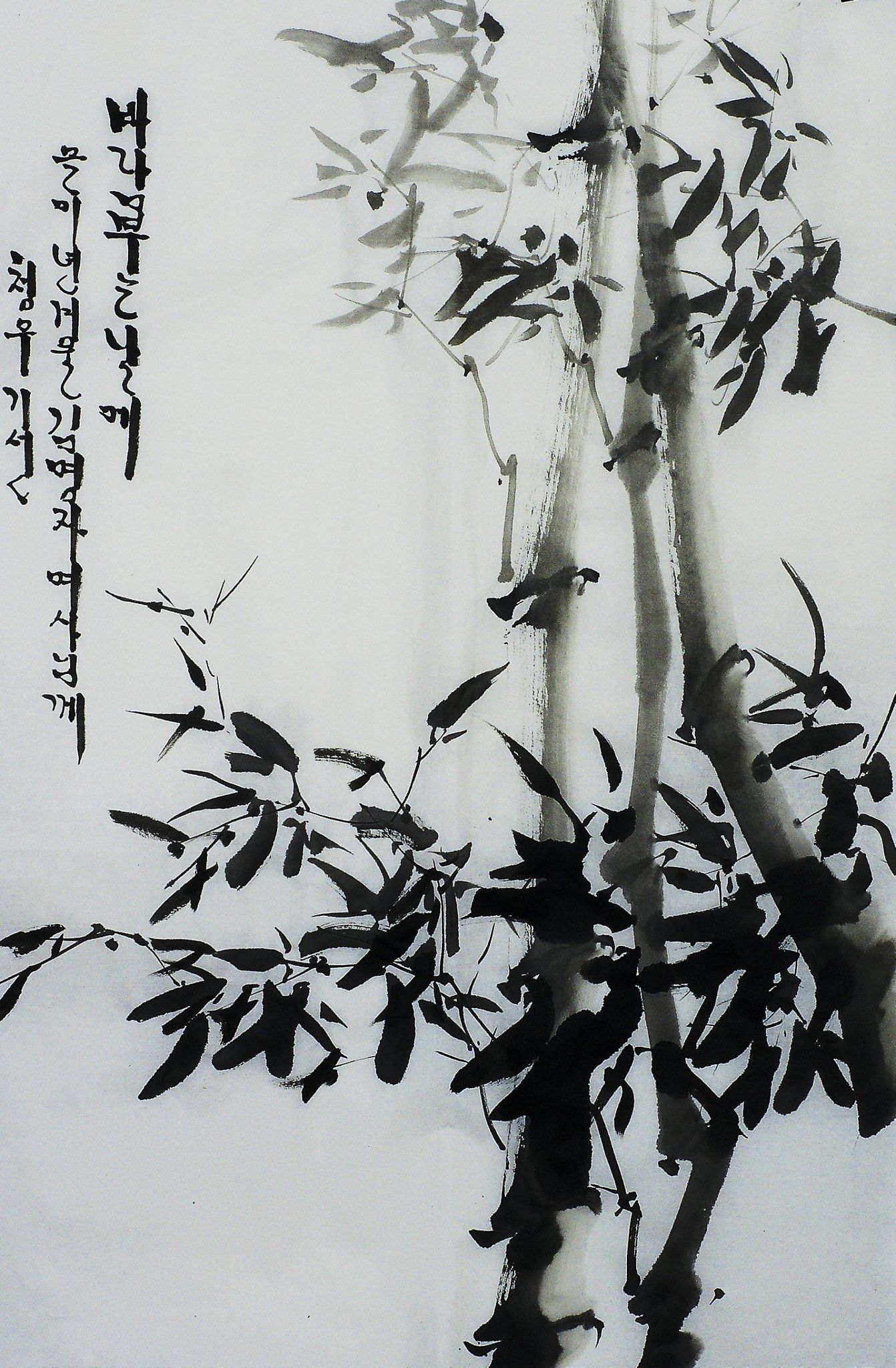 그리고 번지는 것을 막기위해 굵은대에는 마른 후 잎을 그렸습니다.