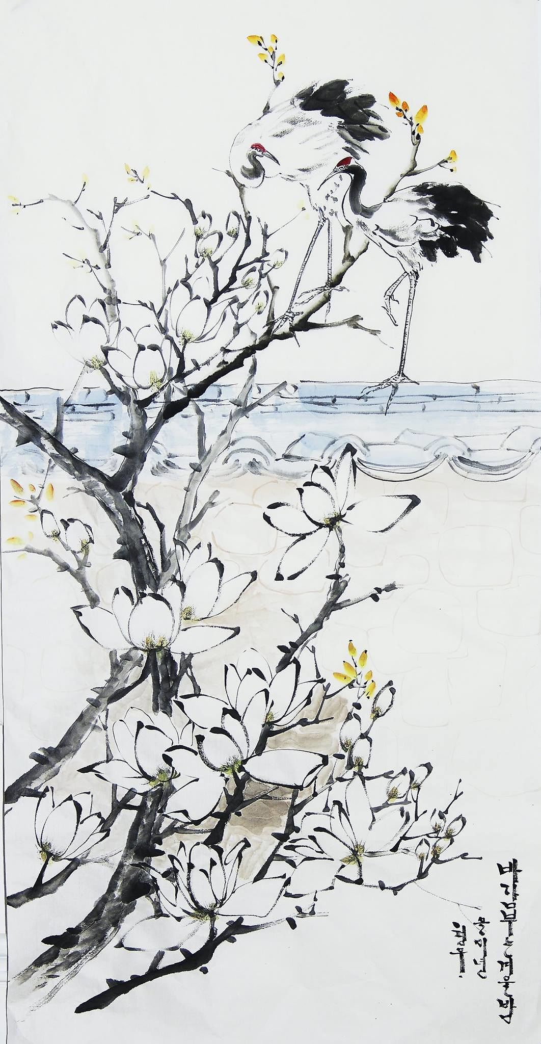 목련과 두루미를 그려봤습니다. 크기는 전지입니다.