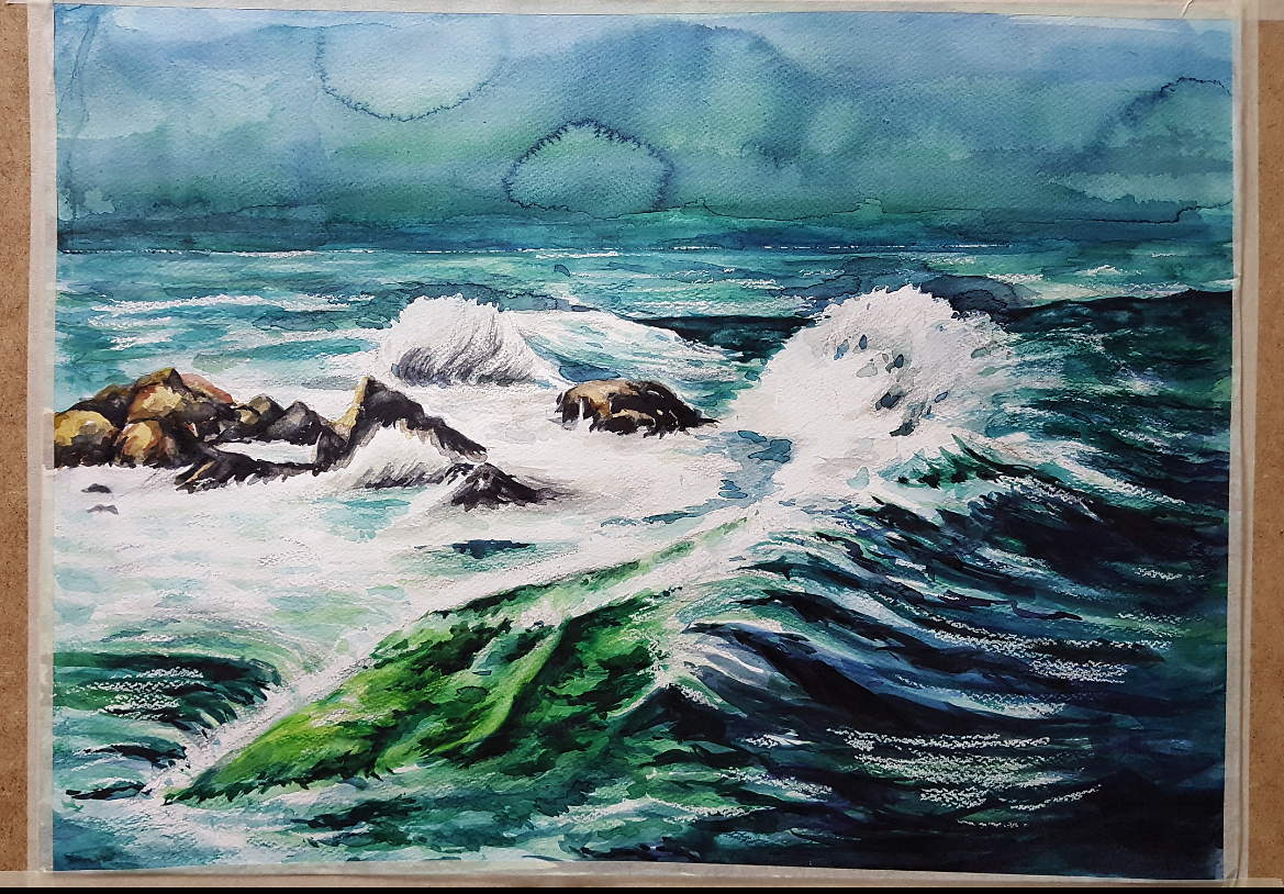 하늘을 여러번 덧칠하다가 색이 탁해졌어요~ㅜㅜ 선생님처럼 충렁이는 파도를 생동감있게 표현하기가 힘들었답니다. 조언 부탁드려요~^^