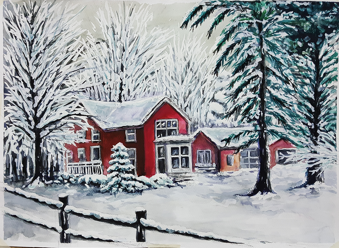 중급과정을 하고 있지만 눈내린 풍경을 그려보고 싶어서 시도해봤습니다. 역시 무리였던지 스케치부터 헤맸던 작품입니다. 특히 오른쪽 나무들 표현하기가 제일 어려웠어요! 다시 그려볼께요~ 조언 부탁드려요!