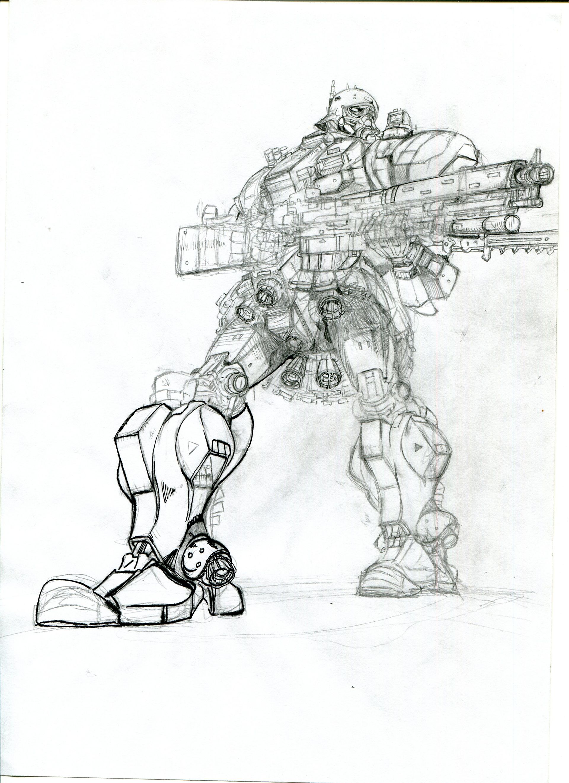 사실 로봇하면 크기에 대한 강렬함이 있어서 그런지 몰라도 밑에서 보는듯한 그림을 그렸습니다.