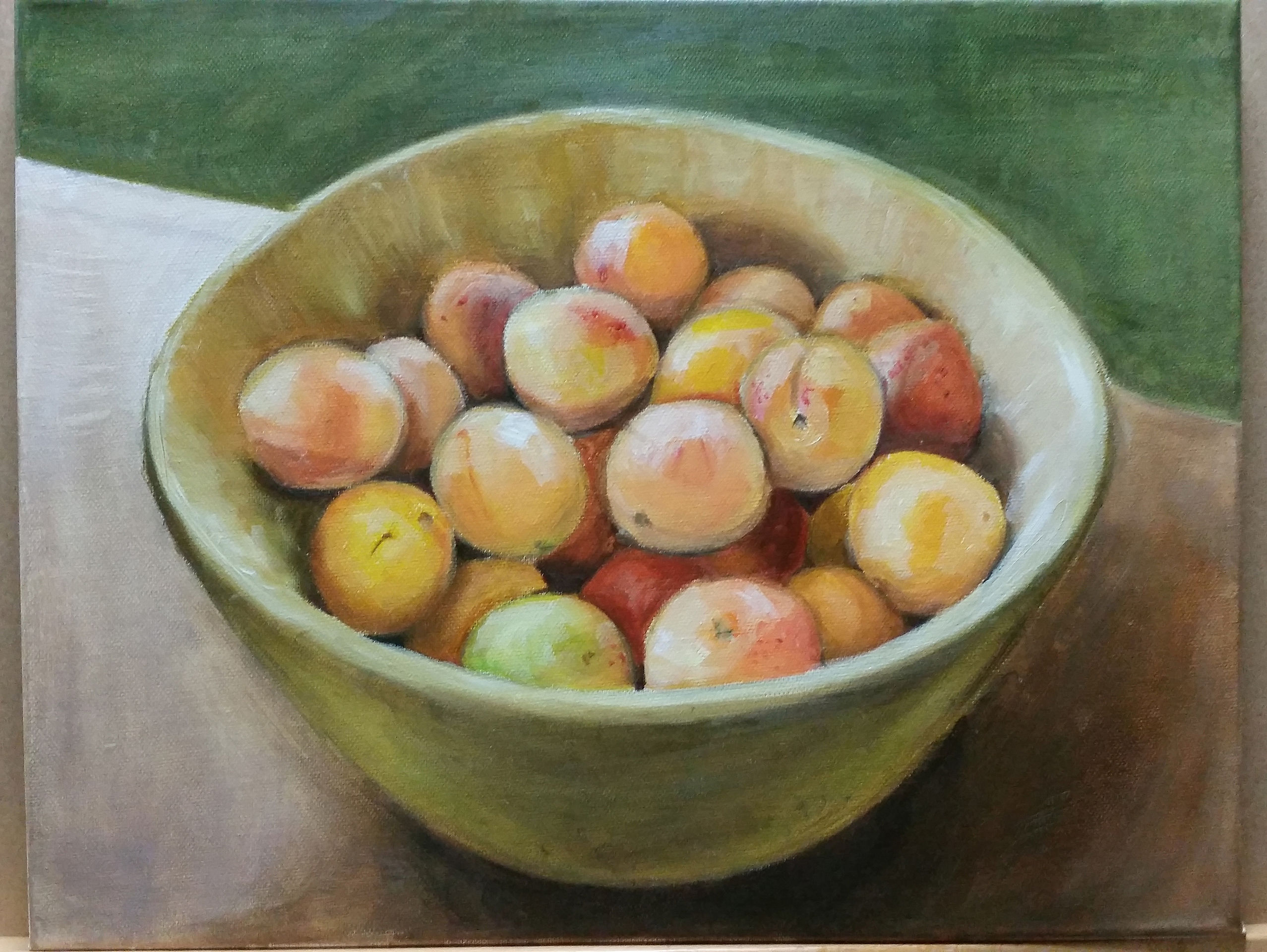 선생님 안녕하세요!선생님의 강좌 덕분에 유화 처음 그려보는데 너무 재미있습니다.살구는 밝은 부분을표현하는 것이좀 어색하게 된 것 같습니다.그리고 스케치선이 드러나서 가리기도 쉽지 않았습니다. 여러모로 좀 어려웠지만 즐거운 시간이었습니다.^^