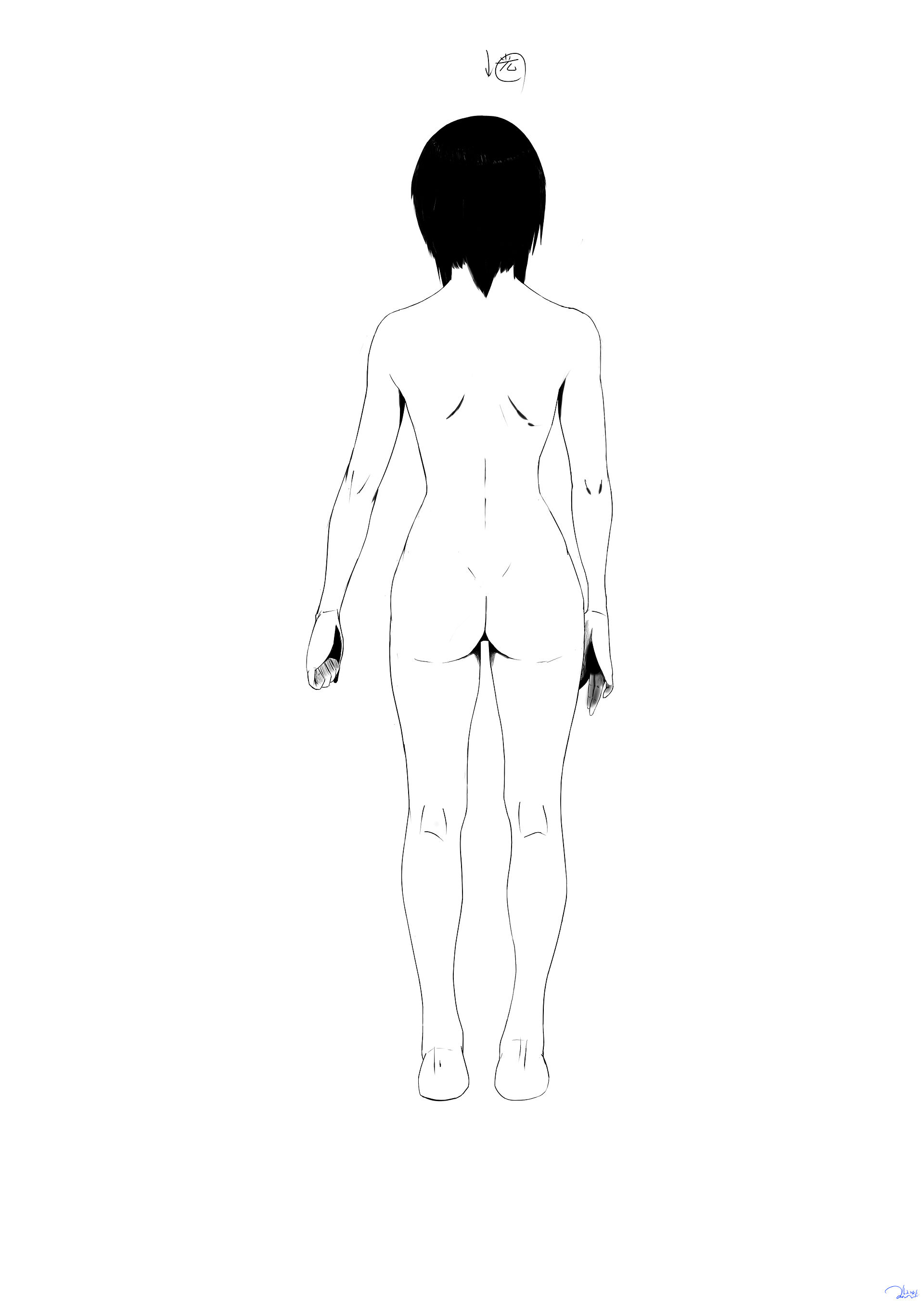 나름 소녀의 뒤태라고 그려봤는데, 선을 많이 쓰니까 '운동 많이 한 여자의 등'이 되어서 선을 지워보기도 하고 어깨가 너무 직선적인 것 같아서 둥글게 깎아보기도 하면서 느낀 게 여자가 남자보다 그리기가 많이 힘들다는 걸 느꼈습니다. 기본 관절의 구조를 모르고 선만 땄던 것 같아서 요즘은 해골 해부도 자주 보고 근육 모양도 많이 신경 쓰면서 그리고 있습니다.
