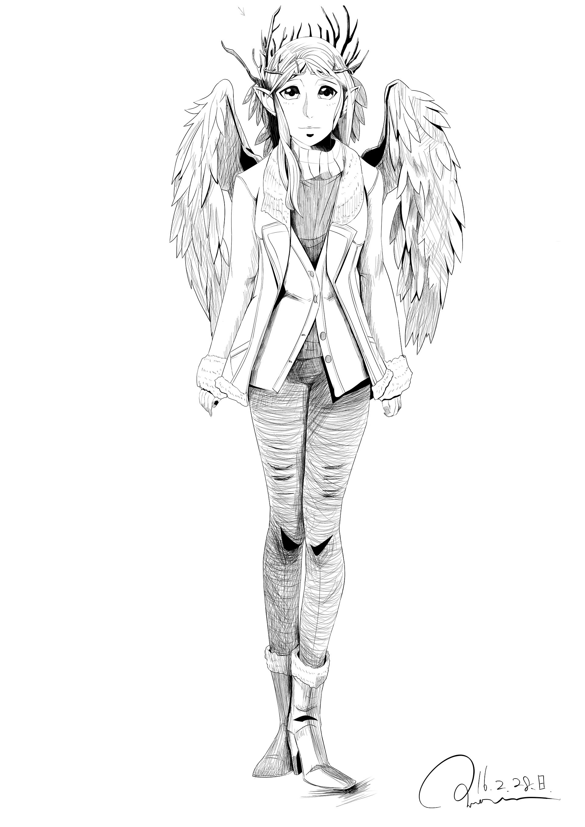 앞으로 더 많은 날개도 그려야하기에 고민하다가 질문을 던집니다. 날개 깃털을 사선 치기로 어떻게 보다 실감나게 그릴 수 있을까요?