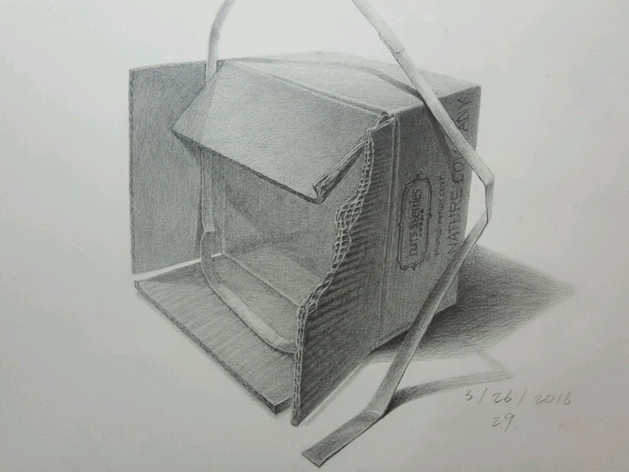 종이상자와 노끈중 어느것이 더 밝은계통으로 그릴까 많이 망설이다 노끈을 더 밝게 생각하고 그렸는데 올바르게 판단한것인지 궁금합니다.