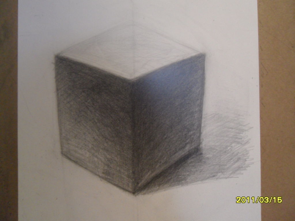 윗면이 명암 처리를 어떻게 해야 할지도 모르겠고요. 그림자의 가장 진한 곳이 오른쪽면보다 얼마나 진해야 하는 지도 헷갈립니다. 아무래도 정육면체를 더 그려보아야 할 것 같아요. 감사합니다^ㅡ^*