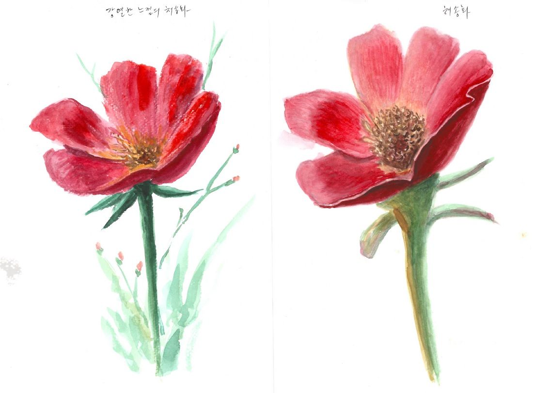 선생님 꽃 그림에서 다시 뵙께 되어 반갑습니다.작은 책상위에 컴퓨터와 물감, 물, 화지등을 놓고 그리다 보니 물감이 종이위에 많이떨어지고 튀고하여 지저분 합니다.조언 부탁드립니다.