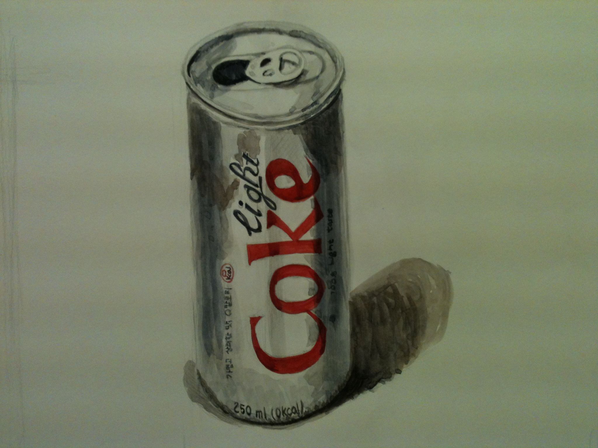 글자 원근 표현이 어려웠어요. 또 캔의 경우에 제 눈에는 빛에 따라서 색상차이가 극명한데 칠을 그렇게 하니 어색한 것 같아요. 오늘 올린 3가지 그림 모두 그림자 표현이 너무 어려워요.
