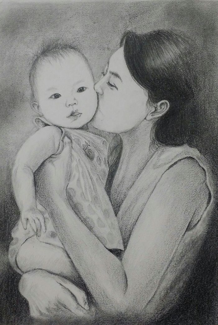 처음에 아기 눈 그리는게 잘 안되고 엄마귀 그리는것도 어려운것 같습니다. . 연필선이 곱지않게 거칠게 표현된것 같기도요. 더 부드럽게 표현이 되어야 하나요. 조언 부탁드려요.