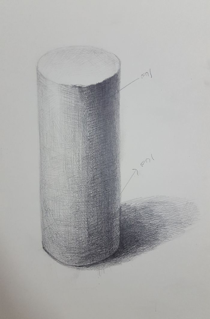 제가 그림 독학하고 싶어서 하는거라 ㅠ...혼자 그리고 혼자 봐서 ;;;솔직히 제 눈에는 어디까지 그려야 되는지 잘 모르거든요.늦더라도 답변 꼭 해주셨으면 좋겠어요 ^^ㅎ오늘은 원기둥 질문합니다.1. 원기둥이 잘 돌아갔는지(?) 궁금합니다.2. 여기라고 표시 된 부분이요. (제일 어두운 부분입니다!)같은 어둠 구간일지라도 (위어둠)에서 (밑어둠)까지 풀어줘야 하나요?
