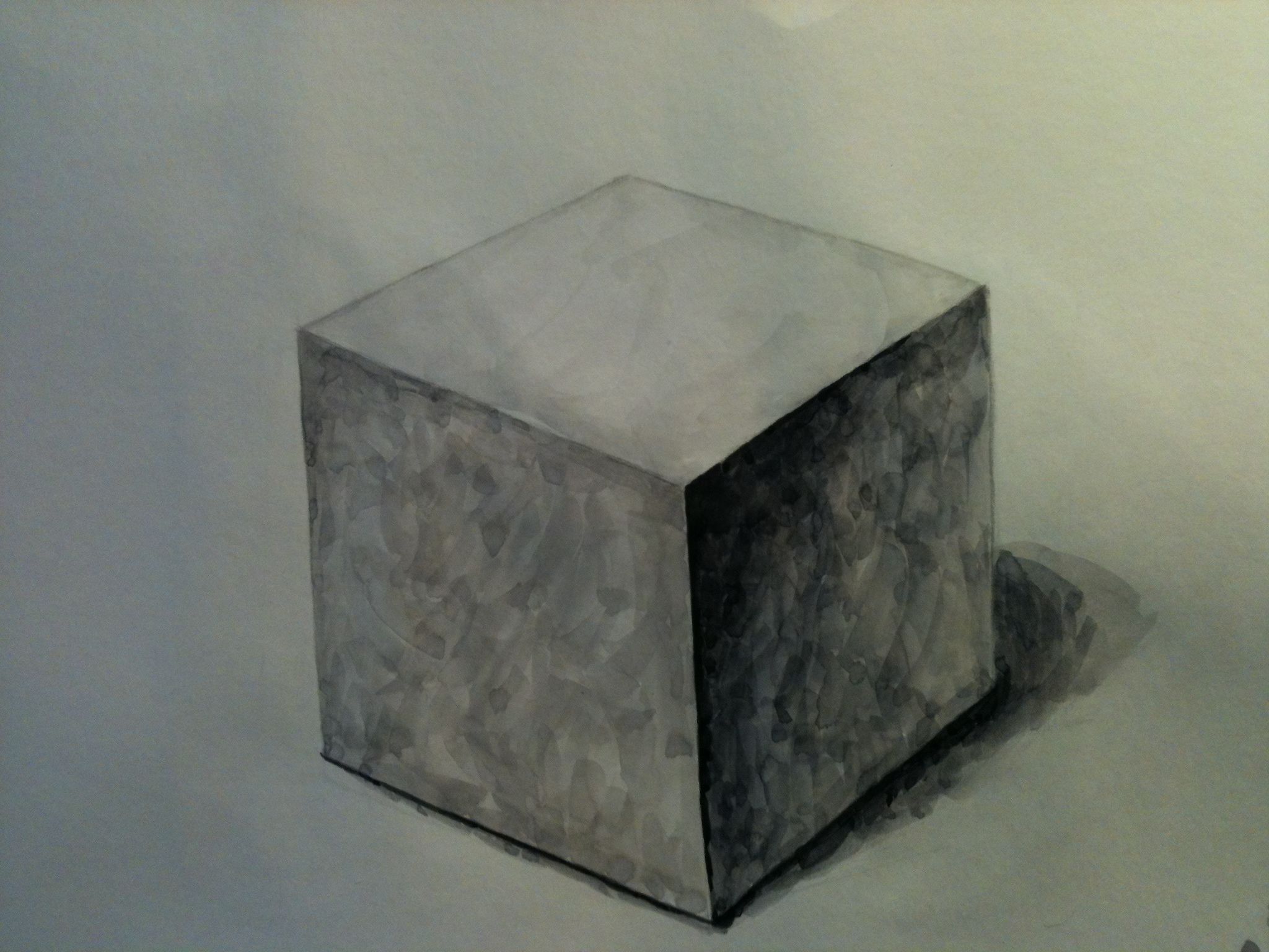 초반 강의 들을 때부터 네번째 그린 사각기둥이에요. 그나마 이게 제일.. 교수님 그림 보고 그렸는데.. 맑고 깨끗한 느낌이 안 나네요.. 붓질도 훨씬 좁아 보이고.. ㅠ.ㅠ 16호 붓을 사용했어요. 참. 무채색 만들어서 칠하면 붓질 중간에 갈색계열과 울트라마린딥이 분리될 때가 있어요. 파레트에서 덜 섞어서 그런 것일까요.