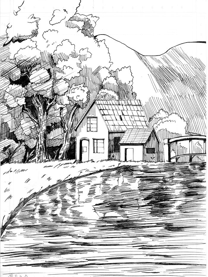 일전에 가르쳐주신 대로 이번에는 강물을 강조하고자 선을 넣어보았습니다.