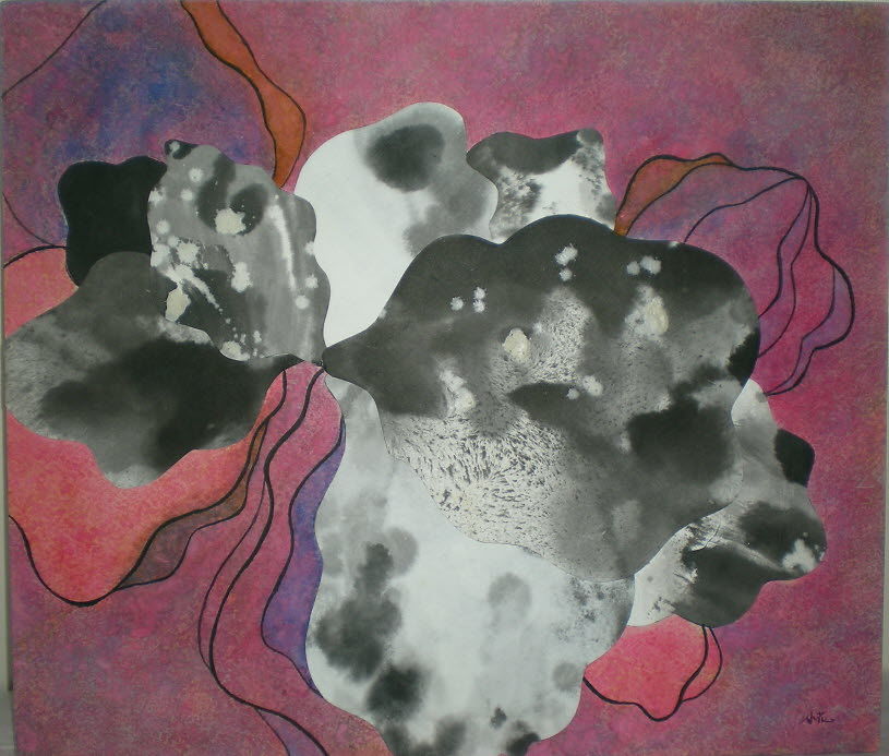 교수님 작품은 좀 투명한 분홍(보라)빛인데 전 좀 탁해졌습니다. 회명색 위에 파랑색을 칠하고서 핑크색을 5번을 올리고 보니 탁해졌어요...>0