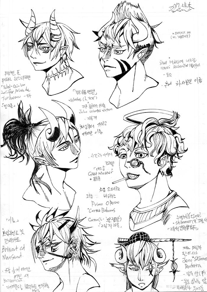 오늘은 잠시 쉬면서 숨 고르기라도 할까 싶어서 그동안 그려본 캐릭터 얼굴을 올려봅니다.