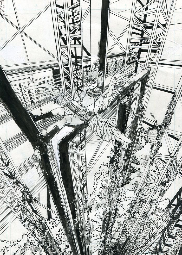 이 문제는 그림을 그리면서 스스로 풀어나가야 할 문제지만, 빛이 닿질 않아서 그림자가 지는 부분만을 골라 먹 처리를 한다는 것이 생각보다 어렵네요.. 조금만 잘못하면 원고지 전체가 새까매지니까요. 고민을 많이 하고 그렸습니다.