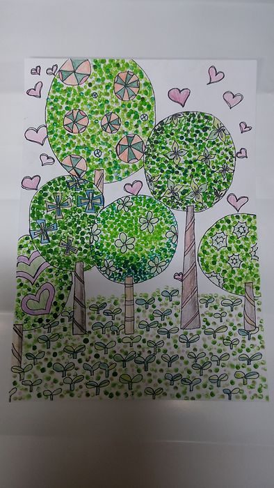 녹색으로 싱그러움을 담아 면봉으로 재미나게 했어요.