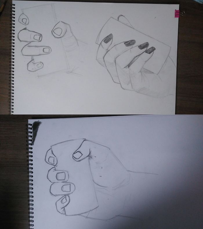 선생님 눈으로만 보고 그림을 그리려니눈에 쥐가 나는 기분이에요상당히 힘이 드네요선생님 손 무서워요남자 손 여자손 그려놓고 보니 구분이 잘 안가는거 같아요눈에 띄게 표현하기가 쉽지 않은거 같습니다.
