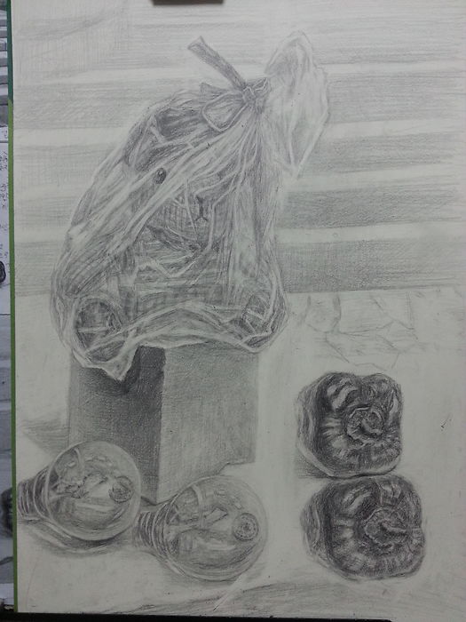 비닐에 쌓인 곰인형 그리다 힘들어서 완성 못하고.  선생님께 중간 점검 받고 다시 그려보려 고 합니다 선셍님  지적 부탁드립니다.