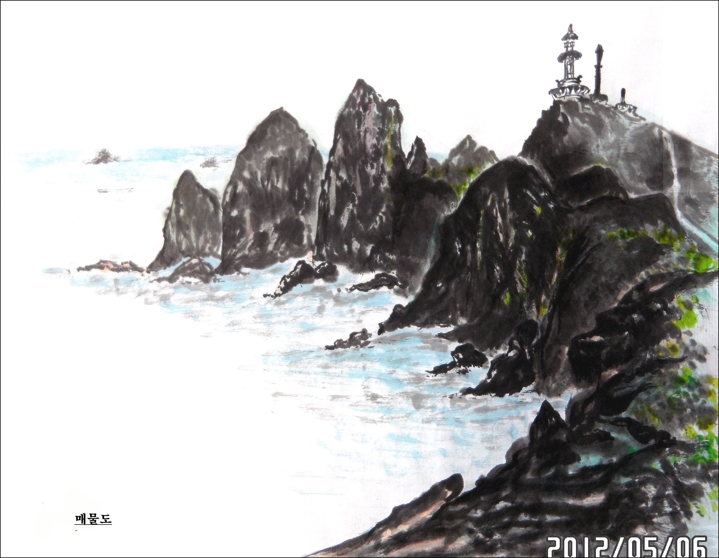 고루고루 지적을 바랍니다. 원근법(먹색과 크기)의 미숙과, 바다물의 파도그림은 너무 어려운것 같았습니다.