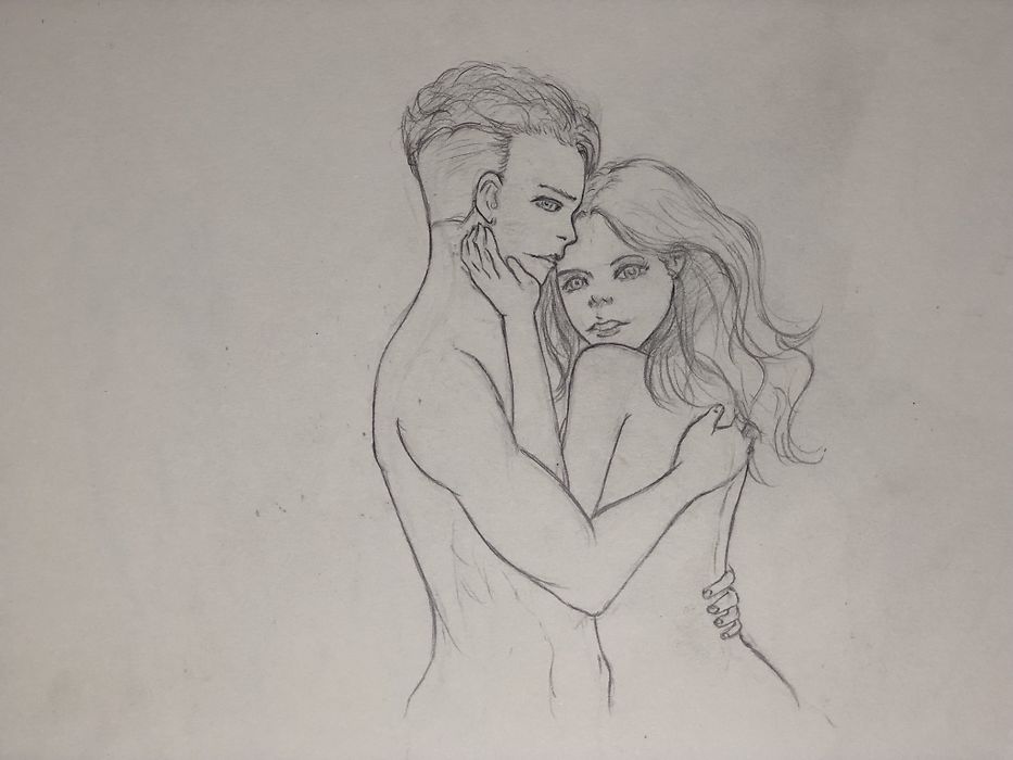 두 사람이 포옹하는 동작 드로잉 시각적 이해