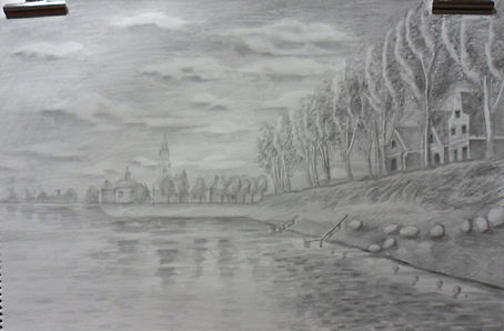 풍경연습입니다. 그런데 마음에 참 안들게 되버렸어요. 나무도 너무 작은것같고 명암도 강약이 확실치가 않아보여요. 선생님께서 콕 집어서 이것저것 조언해주시면 감사하겠습니다.^^