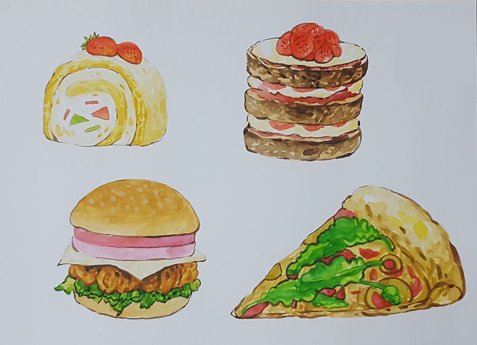 음식 디저트 보고 그려봤어요.