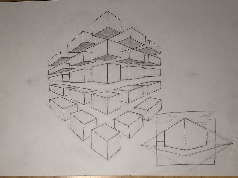 안녕하세요~ 선생님!! 감기에 걸려서 그림을 그동안 못그렸습니다ㅠㅠ 지금은 어느정도 회복된 상태라서... 2점투시 강의 듣고... 복습을 했습니다^^ 정육면체 간격이 자꾸 삐뚤어 지네요 ㅎㅎㅎ 최대한 정확하게 한다고 했는데...ㅠㅠ 그동안 정육면체 방향이 조그만 달라져도 그리기가 어려웠었는데~ 이제는 어느 방향에서도 그릴수 있을것 같아요ㅎㅎ 좋은 강의 해주셔서 감사합니다^^