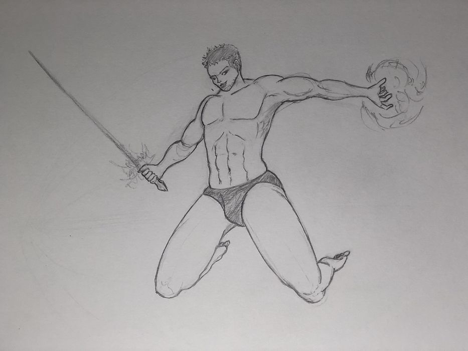 2점 투시를 활용한 동작 표현 - 양팔을 벌리고 점프하는 남성