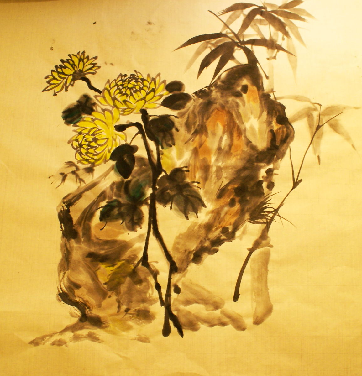 강의들으면서 그려봤습니다. 국화가 바위속에 묻혀버렸네요. 잎의 농담에 따라 잎맥의 강도를 조절하려했으나 실패했구요. 줄기도 제대로 표현못해 덪칠을 하게되었네요. 또한 대나무 가지또한 힘이 들어가지 못해 엉성하구요. 하지만 첫술에 배부를수 없으니, 하루 하루 강의를 듣다보면, 붓조절이 가능할것으로 믿고 긴 여정(90일)을 떠납니다. 되도록이면 포스팅을 하여 추 후 비교하도록 노력하겠습니다. 감사합니다.