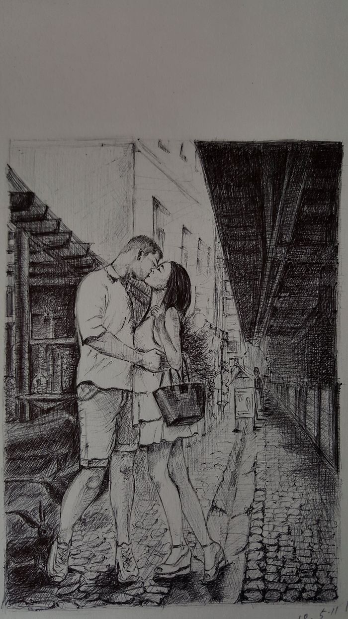 젊은 연인이 있는 풍경