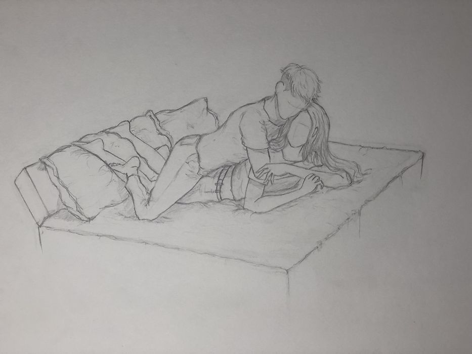 침대를 인체의 각도와 비율에 맞게 그리는게 저는 어렵게 느껴 졌습니다... 베게 위에 올려져 있는 여자 다리 역시 어려웠지만... 고민고민 하면서 그렸습니다...^^ 세부적인 표현도 많이 아쉽지만~ 열씨미 연습하다 보면 잘 그려 질거라 생각하고 있습니다ㅠㅠ