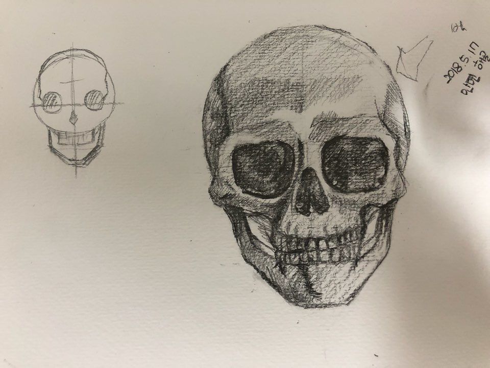 선생님 안녕하세요. 어제 수강신청하고 원형,네모,원은 수십번그리고있어서 올리기가 쫌그래서,얼굴 안면해골을 올려봅니다.그리는거 너무어려워요ㅠ.ㅠ진짜로.....그리면서 자꾸변하고, 글도읽어보고 그림보고 그려보고 선생님 강의만10번이상돌려봐도....모르겠어요18일날 그린 4B로만 그린그림입니다.... 선연습하고있는데도 잘안되는건... 노력이 부족해서일까요ㅠㅠ