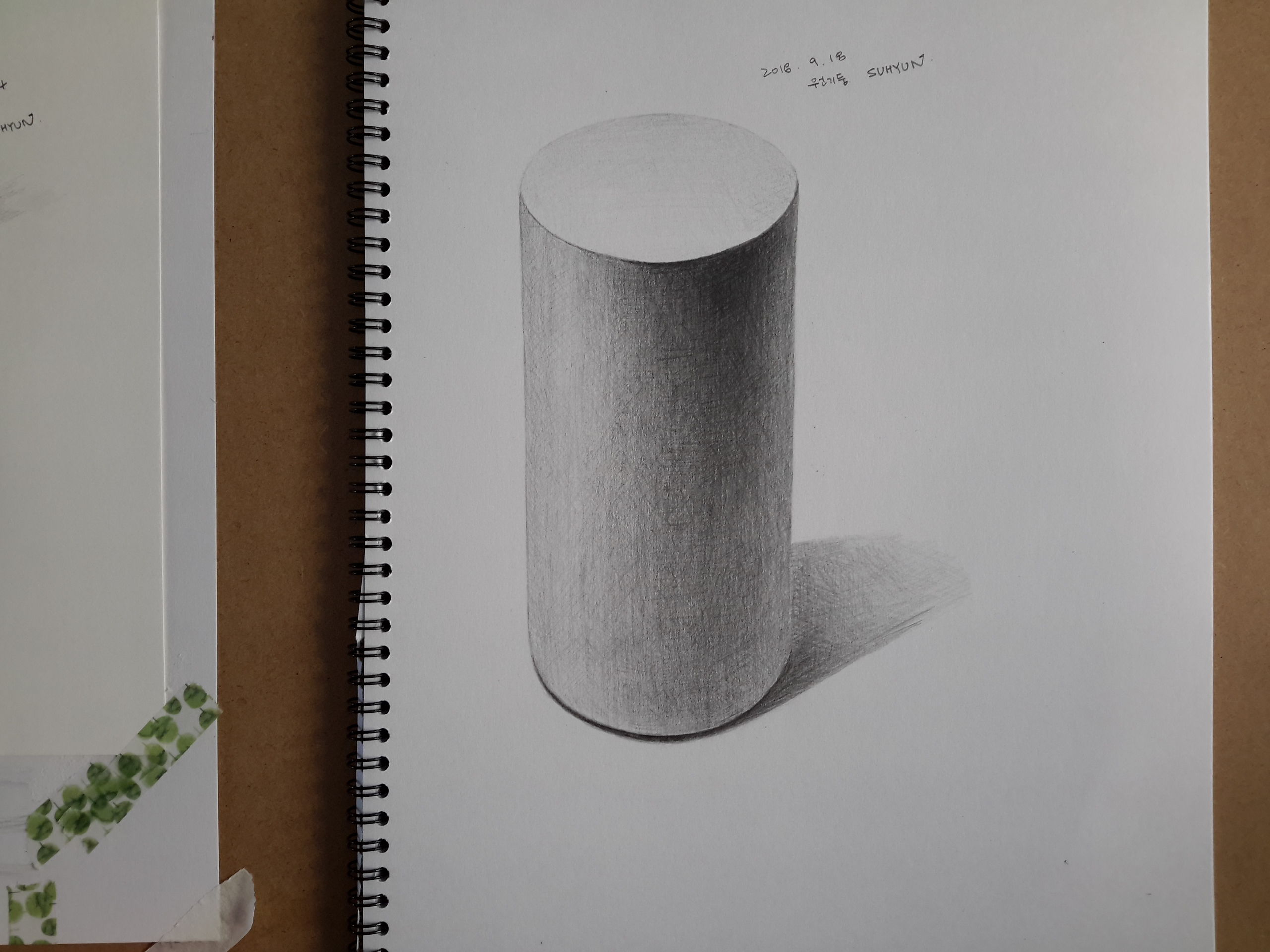 윗면이 너무 동그랗게 되어버렸네요.ㅡ.ㅜ우와.....저는 원기둥이 정육면체보다 훨씬 어려웠습니다.한 면의 명암을 단계적으로 표현하는것이 정육면체와는 다르게 더 정성을 들여야 표가나더라고요.몇번이고 더 열심히 해보겠습니다.선생님 의견 기다리겠습니다.참!정육면체와 벽돌에 주신 충고 정말 감사드립니다.선생님 의견을 저장해서 다시 해보겠습니다.^^♡