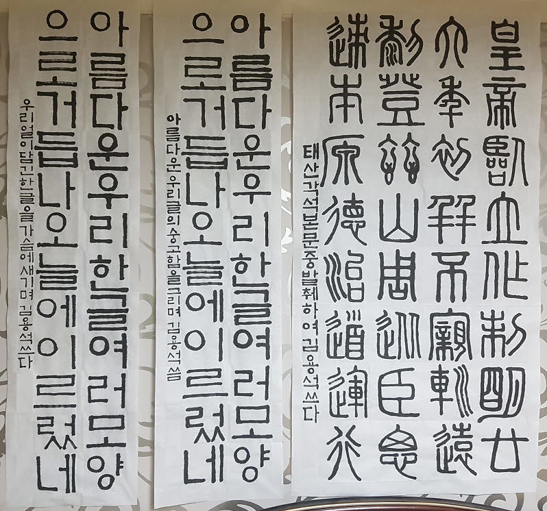 그동안 배웠던 원필, 방필, 전서체를 각가 연습하여 써 보았습니다.