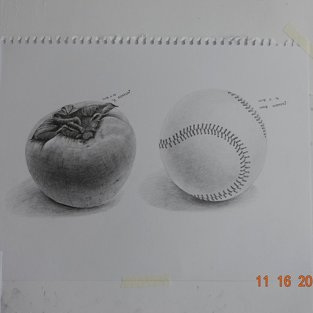 일반 소묘 수업듣다전공소묘 들으려니정말 어렵습니다.갑자기 확 빨라진 느낌...ㅠ흑흑연습만이 답이겠지요.ㅋ날이 흐려 방이 어두워 그런지사진이 본 그림보다 조금 밝게 찍히네요.그림은 아주 조금 더 진합니다.감 꽁댕이 정말 어렵더라고요.몇번을 고쳤는지.....^^평가 기다릴께요~~