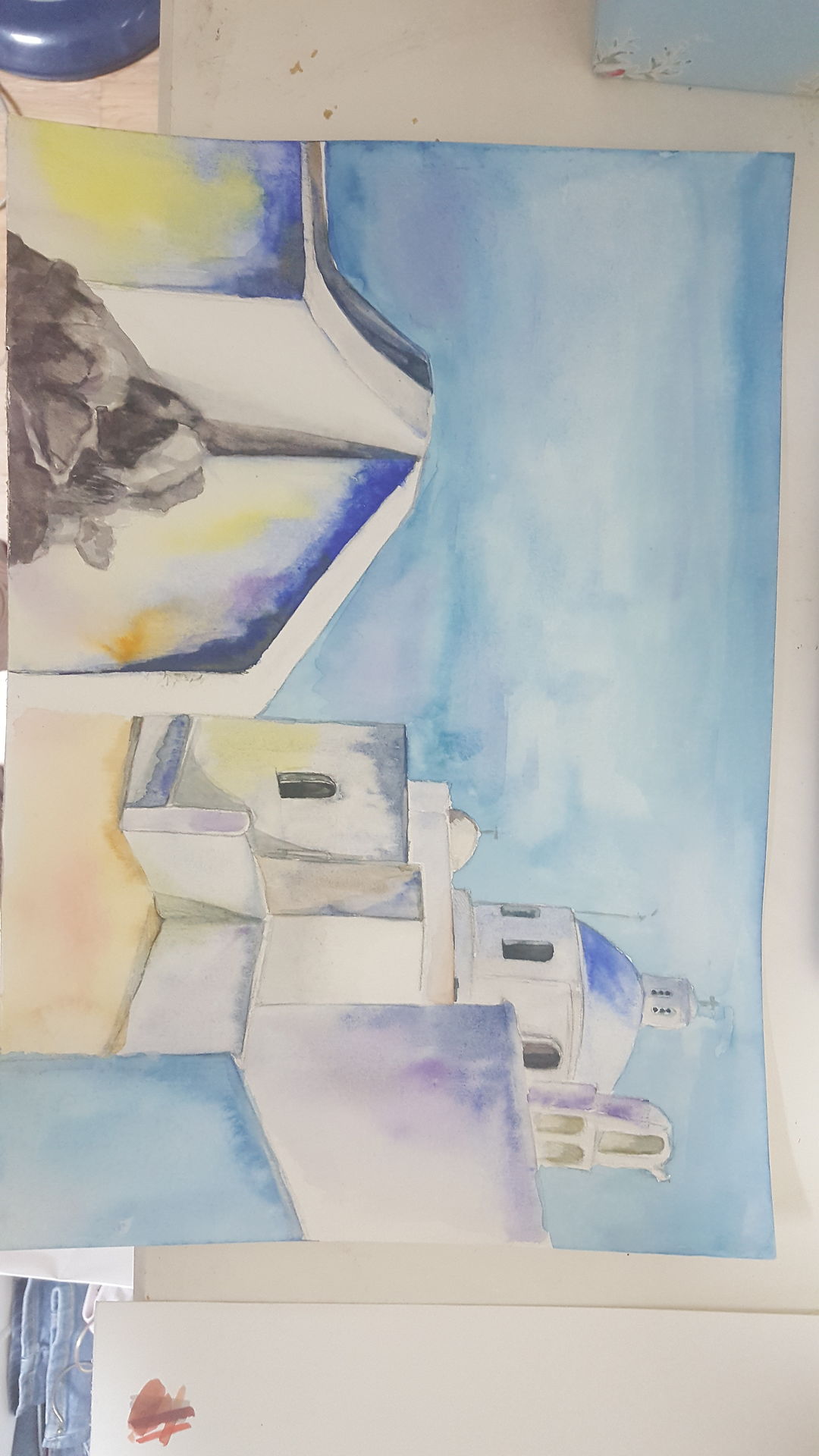 하늘과. 벽이 구분없이 채색된것 같은데 하늘을 더 옅게 가야하는건지 아님 하늘에 강약을 줘야하는지..